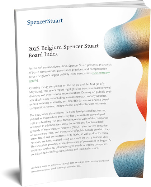 Welcome to the 12th edition of the Belgium Spencer Stuart Board Index, an annual report which analyses board governance practices in the 45 companies that comprise the Bel 20 and Bel Mid indices.